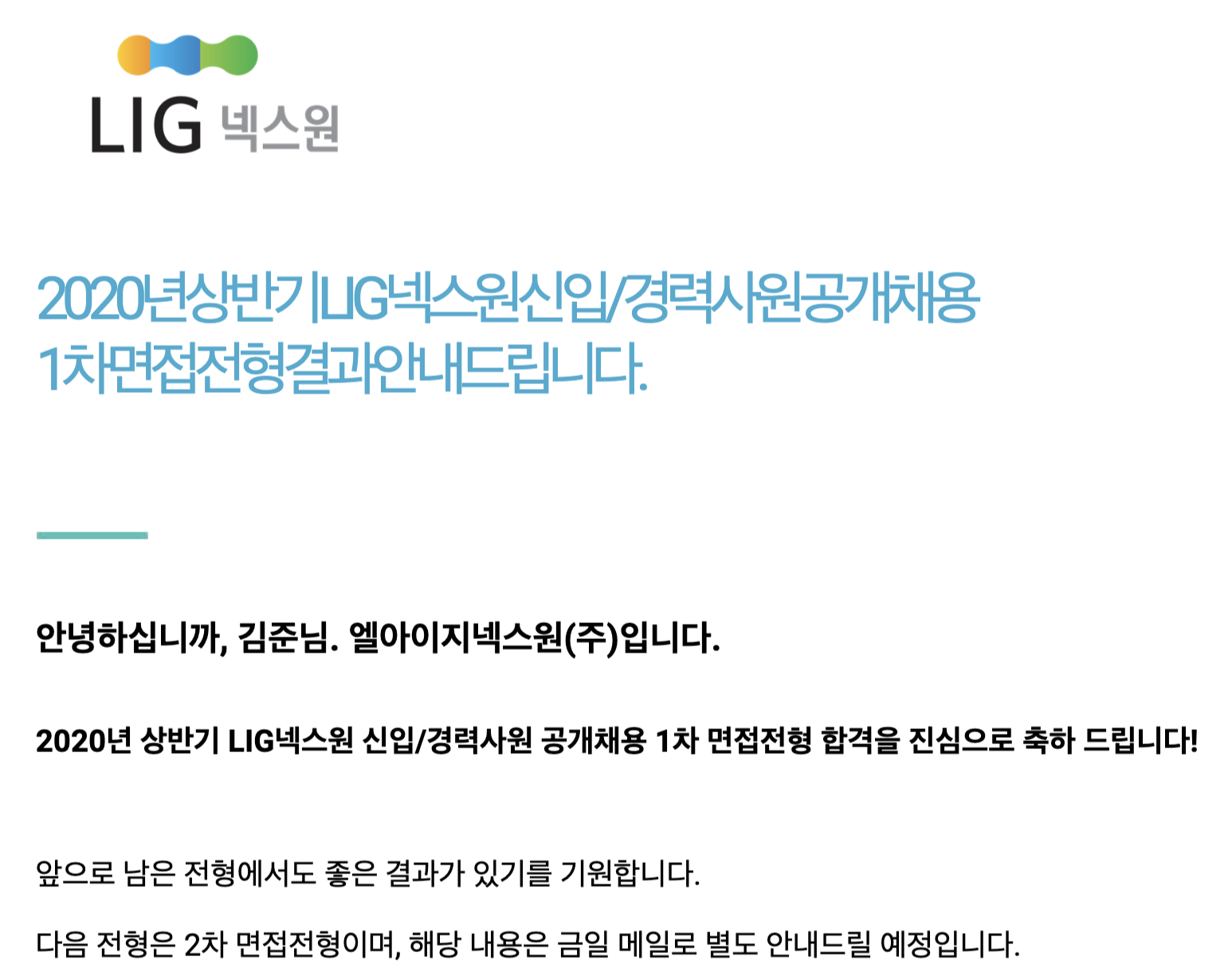 그렇게 침착하게 기다리고 1차면접의 결과가 나왔다.